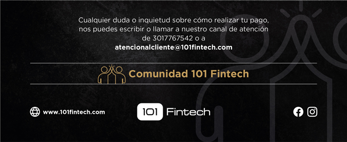 Lo puedes hacer por medio de transferencia desde cualquier banco a la cuenta corriente N° 291000614 Banco Cooperativo Coopcentral, a nombre de 101 Fintech S.A.S NIT 901338766-3, ten en cuenta que tu banco de origen puede realizarte un cobro por esta transacción. Si lo prefieres lo puedes realizar por medio de PSE siguiendo estos pasos: