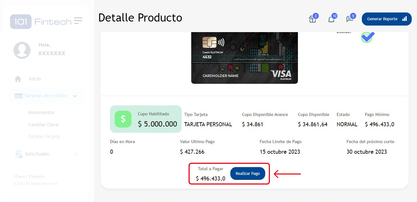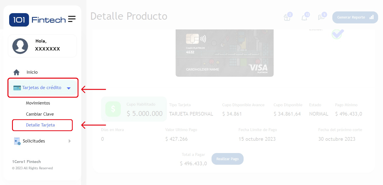 2. Selecciona tarjeta de crédito y da clic en Detalle de Tarjeta